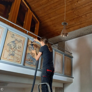 27.06.2023 - Vorbehandlung der Habdankbilder an der Kanzel, Einschalung der Bilder an der Empore