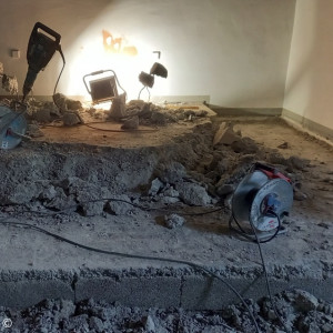 06.09.2023 - Entfernen der Wände für die neue Sakristei - Öffnen der Wand für das Lichtfenster - Entfernen der Bodenfließen
