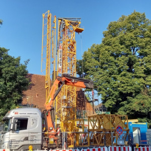 11.09.2023 - Aufstellen des Baukrans - Einziehen der Stütze im Altarbereich